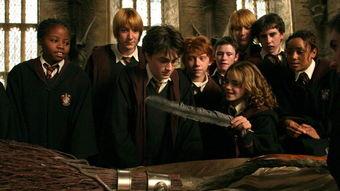 除了哈利波特的新装,赫敏和罗恩的新装也同样引人注目。赫敏的新装采用了经典的黑色长袍,胸前有一个银色的徽章,上面刻有格兰芬多学院的标志。这件新装在领口处加入了荷叶边装饰,使得整件衣服更加优雅。